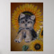 Cute Little Dog and Sunflowers Poster