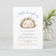 This cute baby shower invitation features a watercolor illustration of smiling kawaii dim sum dumpling. Above, the words "a little dumpling" appear in trendy blue handwriting script. Personalise the text with the name of the mum-to-be in blue script and the details in brown sans serif font. The reverse side provides space for diaper raffle, books for baby, and registry details, along with a convenient QR code guests can scan to visit the registry. Ideal for a boy's baby shower.