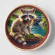 A young, fuzzy racoon has a happy life by the water amidst the woodlands and lush greenery captured whimsically on this adorable clock. It's a perfect clock for the woodland animal-theme nursery, for kids that love cute animals, and for adults as well. This is a sweet, little piece perhaps even in the family library. There are no rules for placement.