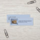 Mini business card with a darling nature photograph featuring a cute little red fox all curled up in a ball resting on the cold winter snow.