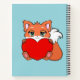 Cute little fox holding a heart on light blue Notebook. Text can be personalised. Fox stands for wisdom!