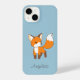 Cute little fox with large ears is standing with his bushy tail up and looking to the side.