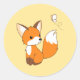 Cute Little Fox Watching Butterfly on Yellow Classic Round Sticker