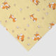Cute little cartoon foxes with large ears and bushy tails surrounded by flowers and fluttering butterflies.