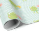 Cute Little Frogs with flowers on mint stripe Wrapping Paper