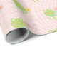 Cute Little Frogs with flowers on pink stripe Wrapping Paper