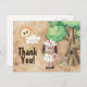 This cute Thank You postcard design features an adorable little girl sheep with a flower in her mouth. She is standing under a happy sun with a tree, flowers, mushroom and bee. The background is a pretty vintage flower print.