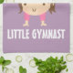 Tumble, flip and have fun! A vector cartoon of a cute little gymnast girl dressed in a pink leotard who is on her hands doing a graceful and beautiful Gymnastics routine pose. This design is great for little girls who are into gymnastics. Text reads "Little Gymnast" which you can personalise with child's name.