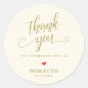 Modern Wedding Minimalist Thank You Gifts Classic favour Round Sticker, in classy script, cute little red heart, with bride and groom name and wedding date, in yellow gold theme.