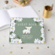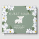 Cute little lamb theme baby shower guest book featuring an illustration of a baby sheep laying down with a sweet smile on her/his face. There are white magnolia flowers on the sides. The background is green and perfect for both baby girls and boys.