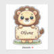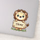 This adorable personalised sticker features a cute whimsical lion holding a sign with your little one's name on it.