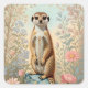 Cute Little Meerkat Pastel Floral Square Sticker