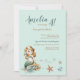 A cute summer-theme invitation to a beach or pool party featuring a little mermaid on a rock listening to the sound of waves in a sea shell. (<a href='https://www.freepik.com/free-vector/watercolor-illustration-of-fantasy-characters_2209874.htm'>Designed by Freepik</a>). <br/><br/>The card is easy to customise with your wording, font, font colour, paper shape options and choice of six paper types.<br/><br/>Not exactly what you're looking for? All our products can be custom designed to meet your needs at no extra charge.<br/><br/>Simply contact us at heartfelthelper@gmail.com.<br/><br/>Coordinating products available: Just ask us!