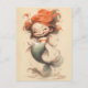 The illustration of this absolutely adorable little mermaid with a big smile is positively kawaii! This pencil sketch artwork has a vintage feel with its muted colours. The little mermaid on this postcard is sure to put a smile on anyone's face.