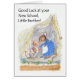 A 'Good Luck at your New School' greeting card for a Little Brother, with a little mouse leaving Mousehole Cottage to set off for his first day at school. This design is from a hand-painted watercolour illustration by Judy Adamson. You can personalise the inside message.