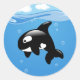 Adorable cartoon chubby Orca whale with a tiny white heart near its tail.