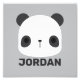 This design features cute little panda bear with personalised name in grey modern sans serif font style on light grey background.