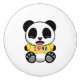 Adorable happy little panda wearing a tee shirt with "I heart panda" written on it.