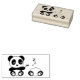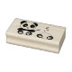 A pair of cute cartoon pandas. The left panda is holding a bamboo stick watching the right panda who has fallen asleep.