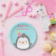 If you are planning a penguin themed birthday party for the little one, complete the party with paper plate party supplies of the same theme! On the paper plate is the cartoon design of a cute and cheerful grey penguin with its tiny wings and little party hat! Perfect for a little one who is having a birthday in the winter December period! Stars and dots pattern for background. Personalise your party message at top of plate.