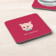 Cute little pig cartoon, calligraphy on burgundy coaster