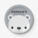 This design features cute little polar bear with personalised name in grey modern sans serif font style on light grey background.