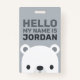 This design features cute little polar bear with personalised name in grey modern sans serif font style on light grey background.