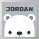 This design features cute little polar bear with personalised name in grey modern sans serif font style on light grey background.