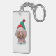Cute little poodle with a Christmas Hat Key Ring