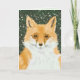 Digital realistic drawing of a cute little red fox with a background of snow flakes falling in the forest. This winter season design would be perfect as a Christmas holidays card. This design has a fixed background, but you can change the size and position of the image and add your own text. The inside of this card has a small image of the little fox. You can change or remove this image and change the card's background color.
