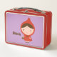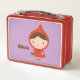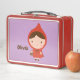 A cute lunch box which kids and girls are going to love! It is based on the popular fairy tale little red riding hood. Background colour and text can be personalised.