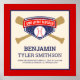 Baby room birth announcement Poster featuring modern typography with crossed bats and a baseball. Add all your lovely details on this easy-to-use template to make your own unique birth stats Poster.