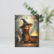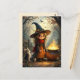 Cute little witch in the forest with a witch's cauldron and two kittens. Perfect Halloween card!