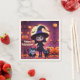 This Napkins features a cute little witch in a black costume with cats and pumpkins on Halloween night.