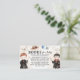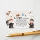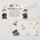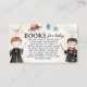 This charming book request card features whimsical watercolor illustrations—potions, a flying letter, an owl, wizard hat, and adorable little wizards—plus a coordinating back design. It's the perfect way to invite guests to bring a book instead of a card, adding a special touch to your baby shower.