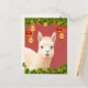 Sweet llama framed by festive holiday greens and balls. Photo ©Christine Greenspan