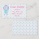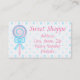 A cute, pastel pink and blue lollipop with blue ribbons tied into a bow adorns this business card. The background behind the lollipop is of blue and pink ribbons tied into bows. The same background shows on the back of the card. It could make a good business card for a candy store or children's clothing boutique. Edit the text to say what you want.