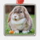 Cute Lop-Eared Rabbit in Grass with Carrot Metal Ornament