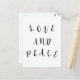 Cute script font words love and peace on a plain colour background.