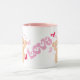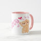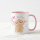 Adorable Valentine Mug featuring a cute Teddy bear couple hugging each other, pink little hearts and butterflies, and the word "Love" on white background. You may change the background colour as you wish.