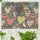 Cute love bunnies pattern with hearts tea towel