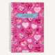 Cute and colourful pattern spiral notebook with personalised name. Perfect for diary, life journal, sketchbook, recipe book or just taking notes in class. Sweet Valentine's Day pattern with kawaii love and heart. Great for kids and teen girls. Make a great gift for back to school celebration.