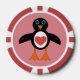 This awesome set of poker chips features a cute cartoon of a penguin with big eyes, a small beak and cute little feet. The penguin has a big red love heart in the middle of its belly and wings wide open ready to give someone a big hug.