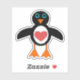 This awesome shaped sticker features a cute cartoon of a penguin with big eyes, a small beak and cute little feet. The penguin has a big red love heart in the middle of its belly and wings wide open ready to give someone a big hug.