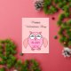 This awesome foil postcard features a cute cartoon of a pink owl with sleepy eyes, a small beak and cute little feet. There is bright pink text inside the owls tummy that says, “Owl Always Love you”. This is the perfect gift for showing someone special how much you love them.