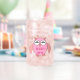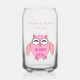This awesome can glass features a cute cartoon of a pink owl with sleepy eyes, a small beak and cute little feet. There is bright pink text inside the owls tummy that says, “Owl Always Love you”. This is the perfect gift for showing someone special how much you love them. There is custom text so you can include the names of the Bride and Groom and the date of the Wedding.