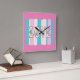 The word Love in a feminine pink, citrus yellow, soft blue on striped background with fun flowers on the letters of the same bright pastel colours. This cheerful design will brighten up any bedroom all year long. Girls, teens or women's bedroom filled with love.