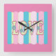 Cute Love Quote Feminine Pastel Pink Yellow Blue Square Wall Clock