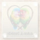 Celebrate the inseparable couple with this glass coaster, which features an AI-generated pair of colourful lovebirds cuddling in a heart-shaped bough. Personalise with names. Great as a Valentine's Day, wedding, or wedding anniversary gift!