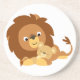 Cute Loving Cartoon Lion Dad and Cub Coaster